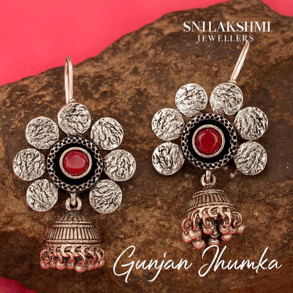 The Gunjan Jhumka is a beautifully crafted traditional earring that captures the essence of ethnic elegance. Its intricate detailing, lightweight dome structure, and premium finish make it a perfect accessory for festive occasions, weddings, and cultural celebrations. The rhythmic design inspired by classical artistry adds a graceful charm to any outfit. Whether paired with sarees, lehengas, or contemporary fusion wear, the Gunjan Jhumka enhances your look with a touch of timeless beauty and sophistication.