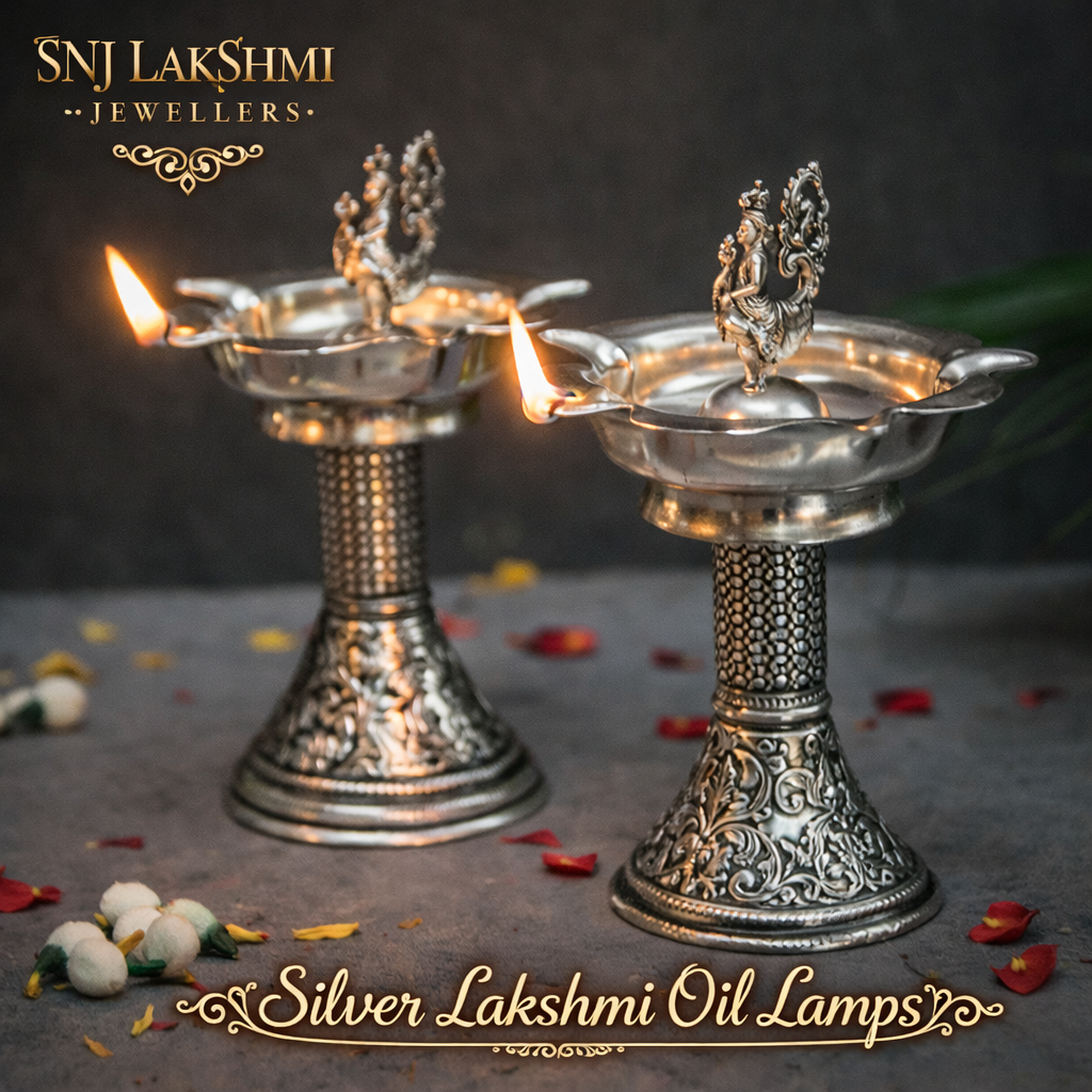 Silver Lakshmi Lamps are a timeless symbol of prosperity, purity, and divine blessings. Expertly crafted from high-quality silver with elegant Goddess Lakshmi designs, these lamps are ideal for daily pooja, Diwali, Navratri, Lakshmi Pooja, and other auspicious occasions. Lighting a Silver Lakshmi Lamp is believed to attract wealth, positivity, and harmony into the home. Perfect as a silver pooja item, traditional silver gift, housewarming gift, or festive return gift, these lamps combine spiritual value with classic craftsmanship.