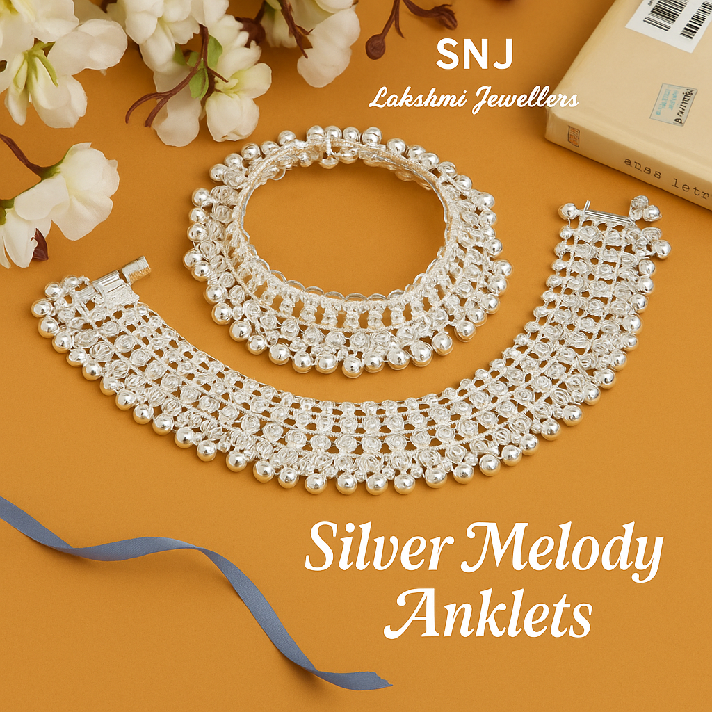 The Silver Melody Anklets are crafted from premium-quality silver and designed with delicate detailing that creates a soft, melodic charm with every step. Lightweight, durable, and beautifully polished, these anklets offer a graceful sparkle that suits both casual and festive wear. Their timeless design pairs effortlessly with ethnic and western outfits, making them a perfect accessory for anyone who loves subtle elegance and everyday comfort.