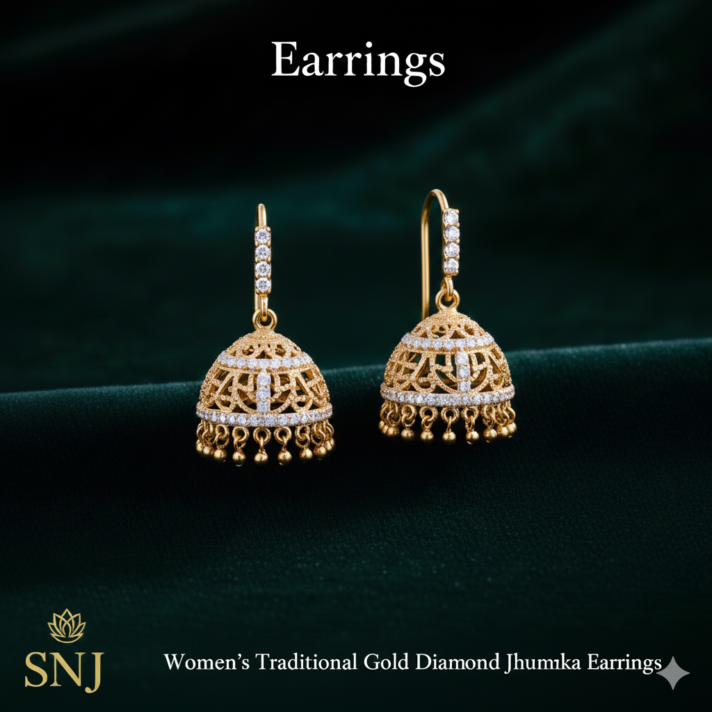 Add a touch of royal elegance to your jewelry collection with our Women’s Traditional Gold Diamond Jhumka Earrings. Crafted with intricate traditional detailing and highlighted with sparkling diamond accents, these jhumkas beautifully blend heritage craftsmanship with luxurious appeal.
